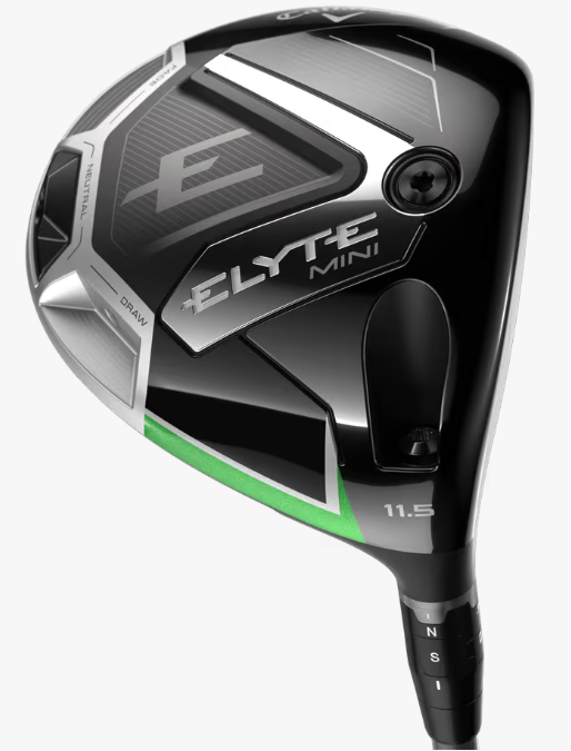 「ELYTE MINIドライバー」は、体積が前作と同じ340㎤で、最新のAi 10x FACEを搭載。コントロールポイント(フェース上にある、最適な弾道に補正する場所)が大幅に増加しました。ELYTEシリーズの他のドライバー同様、空気抵抗を減少させたフォルムや、設計どおりに成型しやすいサーモフォージドカーボン製のクラウンも導入。ソール後端には、新しいウェイトポートを3カ所配置しており、低重心化に貢献しながら、弾道調整を可能にしています。ソール前方には、約5gのスクリューウェイトも設置。